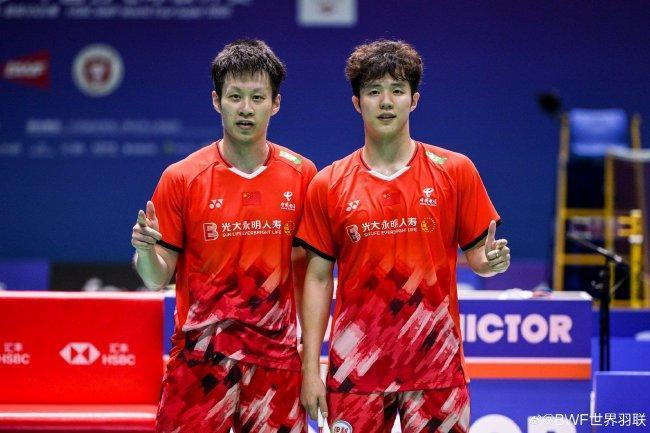在一场国羽德比中,陈柏阳/刘毅用时34分钟,连胜两局,以2个21-14投降队友谢浩南/曾维瀚,晋级正赛16强。