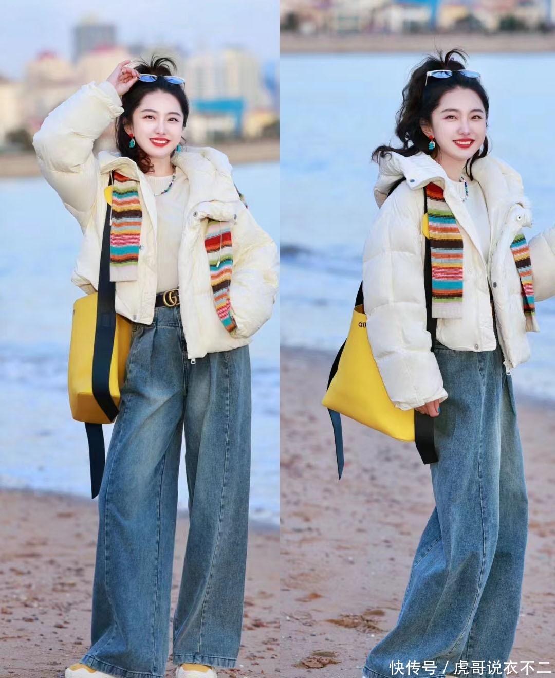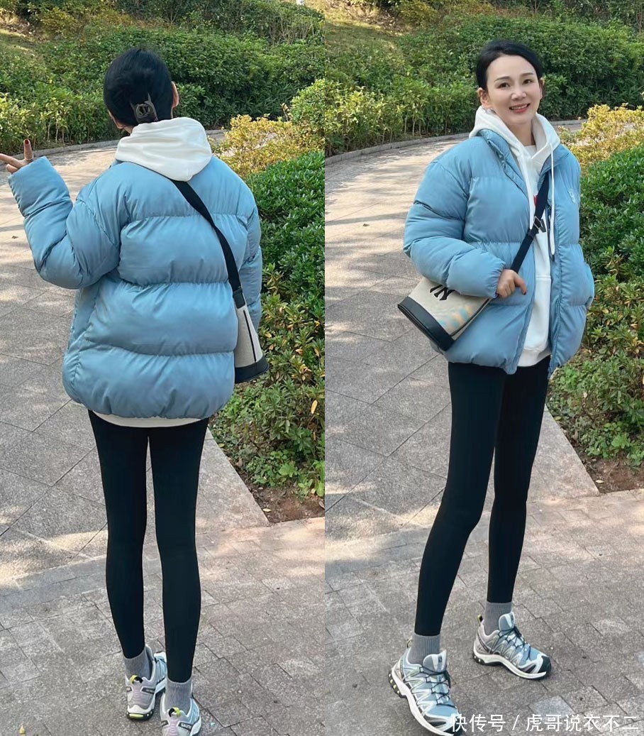 这亦然不少中年女东谈主用来缓解穿搭同质化的一种方法6868棋牌,举例图中的这件蓝色羽绒服,就大要平方安闲出是非的披露气味,十分前锋耐看。