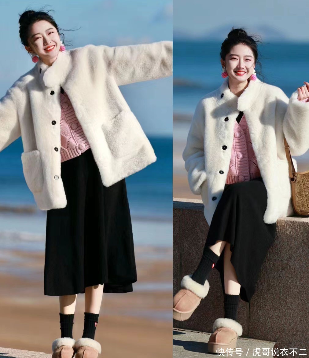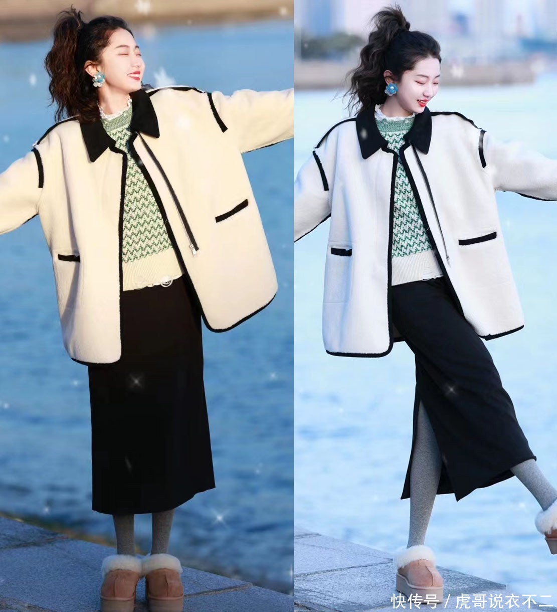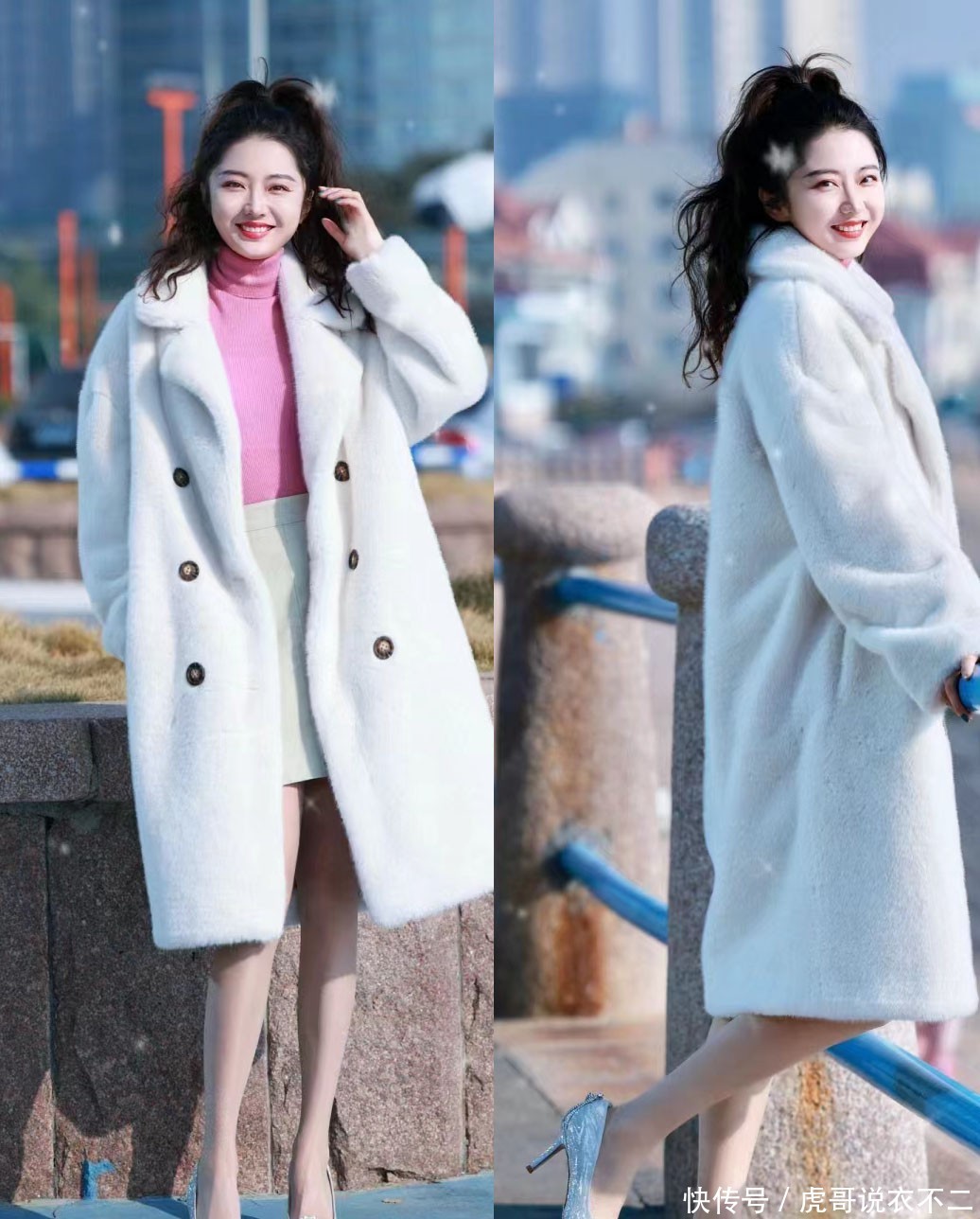 像图中这款羊羔绒材质的大衣,就能较着看到厚度方面有了提高,从而在造型中推崇出更可以的保温遵循。而利用白色的配色,则是看成均衡面料的一种方法,可以使体型符合辩别痴肥感。