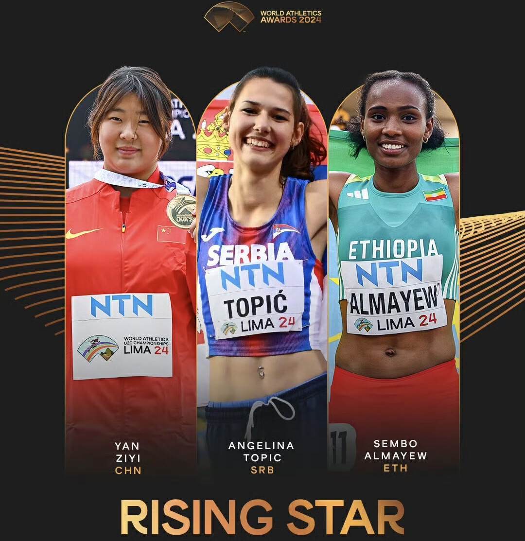 之后的寰宇后生U20田径锦标赛暨世界后生田径锦标赛取舍赛、寰宇田径冠军赛、田径世青赛,严子怡在女子标枪名目伶仃求败,掀翻夺金怒潮。在好多东说念主看来,严子怡有望在将来为中国女子标枪创造更大的历史!本次世界田联年度最好评比,严子怡到手获取最好新星提名。官方给出的考语是:16岁的她,在本年屡次创造女子标枪世界后生记载,况且还拿到了世界U20田径锦标赛女子标枪冠军。